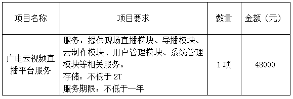項(xiàng)目名稱:廣電云視頻直播平臺(tái)服務(wù)