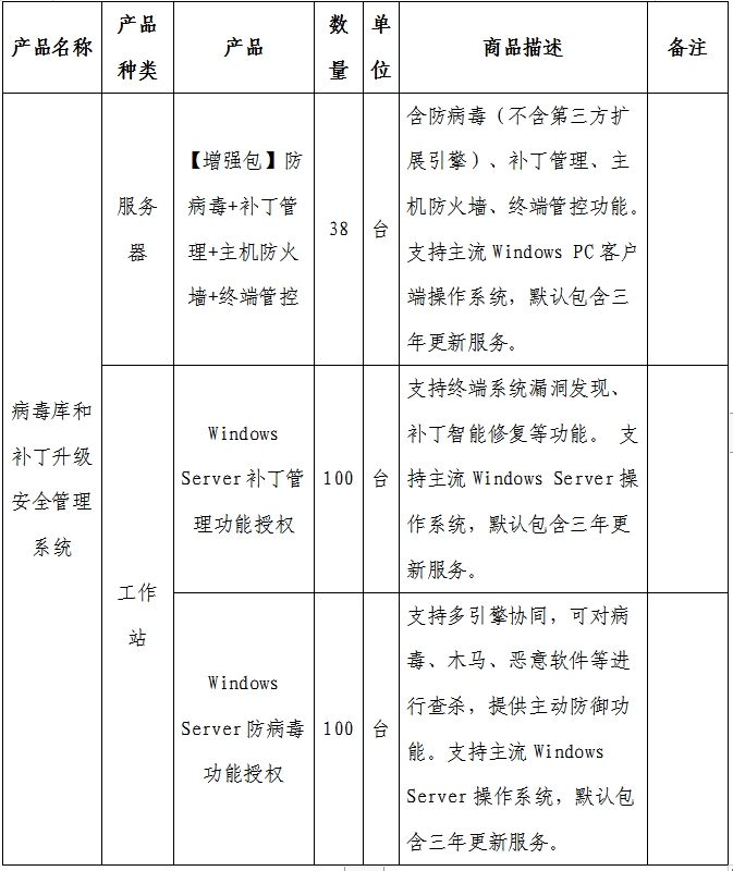 病毒庫和補(bǔ)丁升級服務(wù)(三年授權(quán))項目采購公告