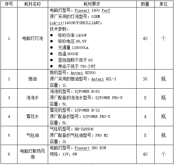 項目名稱:大型演播室燈光耗材采購項目