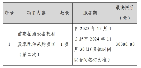 1、標的名稱:前期拍攝設(shè)備耗材及零配件采購項目(第二次)