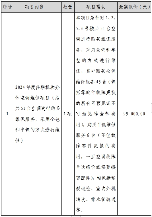 2024年度多聯(lián)機(jī)和分體空調(diào)維保項(xiàng)目采購公告