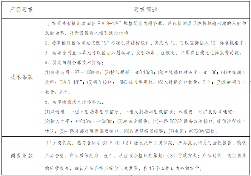 項(xiàng)目名稱:2024年西樵山、季華發(fā)射塔天饋系統(tǒng)加裝功率耦合監(jiān)測(cè)器的改造項(xiàng)目(第三次)
