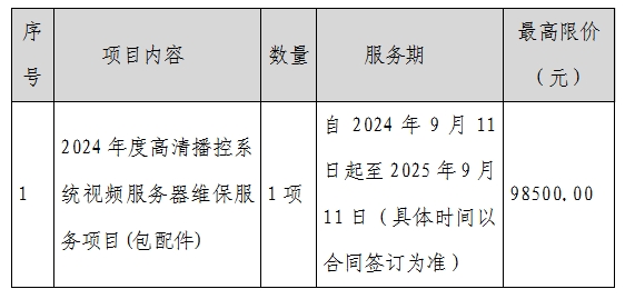 2024年度高清播控系統(tǒng)視頻服務(wù)器維保服務(wù)項(xiàng)目(包配件)采購(gòu)公告