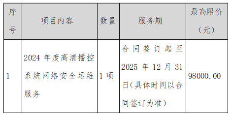項目名稱:2024年度高清播控系統(tǒng)網(wǎng)絡安全運維服務