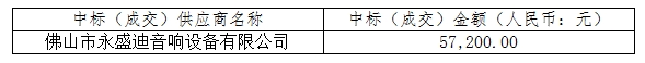 佛山傳媒集團有限責(zé)任公司已于2023年12月14日15:30就1號樓9樓會議音響系統(tǒng)升級項目召開采購評審會,現(xiàn)就本次采購的中標(biāo)(成交)結(jié)果公告如下: