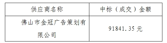佛山傳媒集團(tuán)有限責(zé)任公司已于2024年1月23日10:00就《佛山傳媒LOGO制作安裝項(xiàng)目》召開采購(gòu)評(píng)審會(huì),現(xiàn)就本次采購(gòu)的中標(biāo)(成交)結(jié)果公告如下: