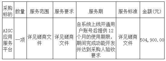 二、采購項(xiàng)目名稱:AIGC應(yīng)用服務(wù)平臺項(xiàng)目