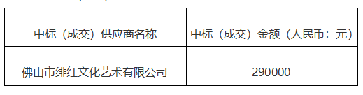 佛山珠江傳媒集團股份有限公司已于2024年10月29日 10:00就2024佛山三龍灣科技城中歐文化周項目物料制作及表演節(jié)目項目召開采購評審會,現(xiàn)就本次采購的中標(成交)結(jié)果公告如下:
