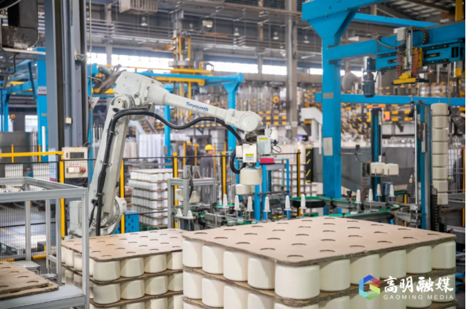 溢達(dá)紡織車間內(nèi),機(jī)器人在有條不紊地運(yùn)轉(zhuǎn)。高明融媒記者洪海攝