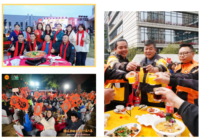 “新春快樂,馬年大吉,干杯!”一連三場的職工新春年夜飯,工會團年盆菜熱氣騰騰端上桌,來自各行各業(yè)的佛山職工圍坐一堂,舉杯相慶,笑語盈盈。